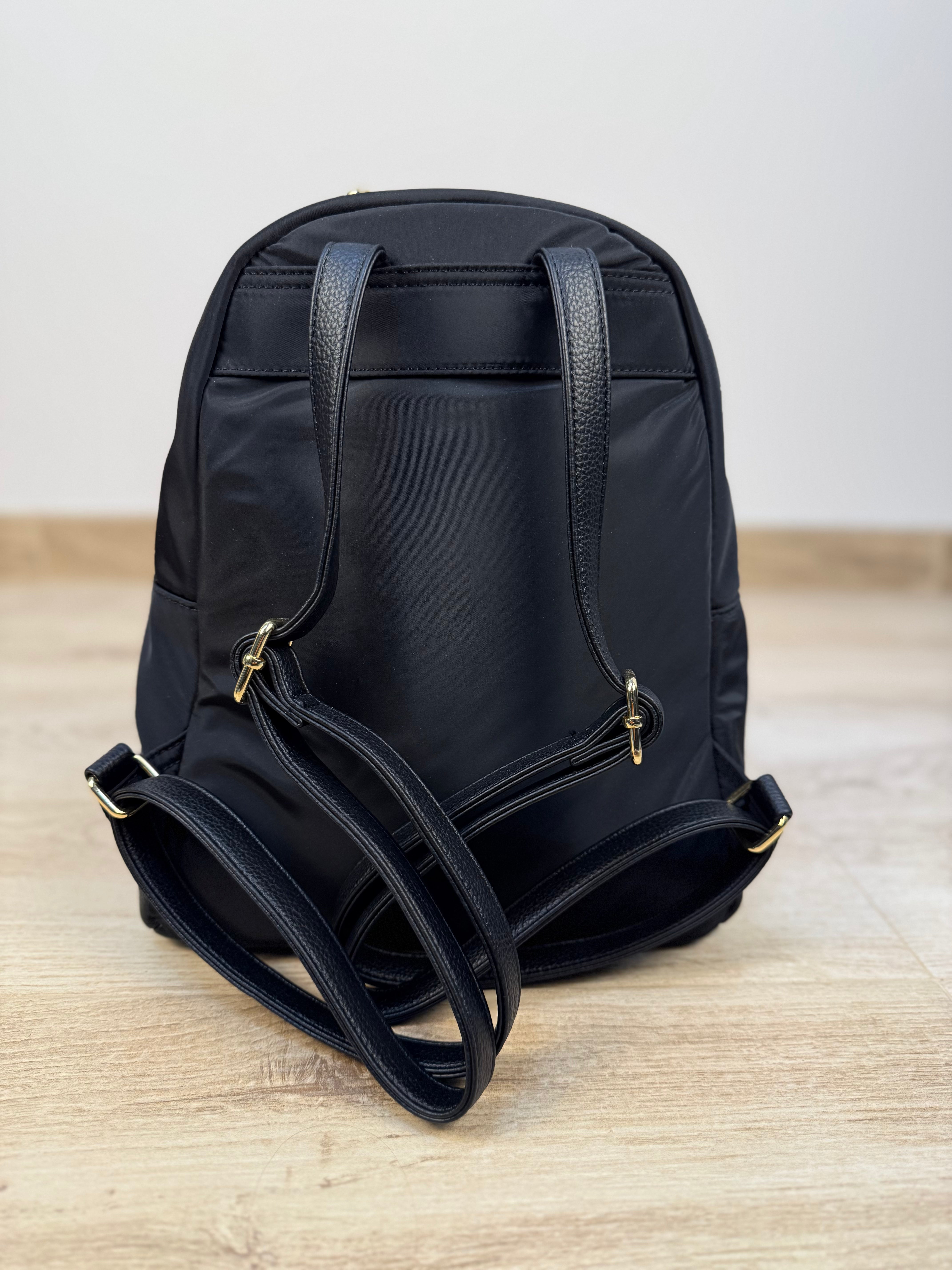 Zainetto in tessuto tecnico con dettagli in similpelle pitonata